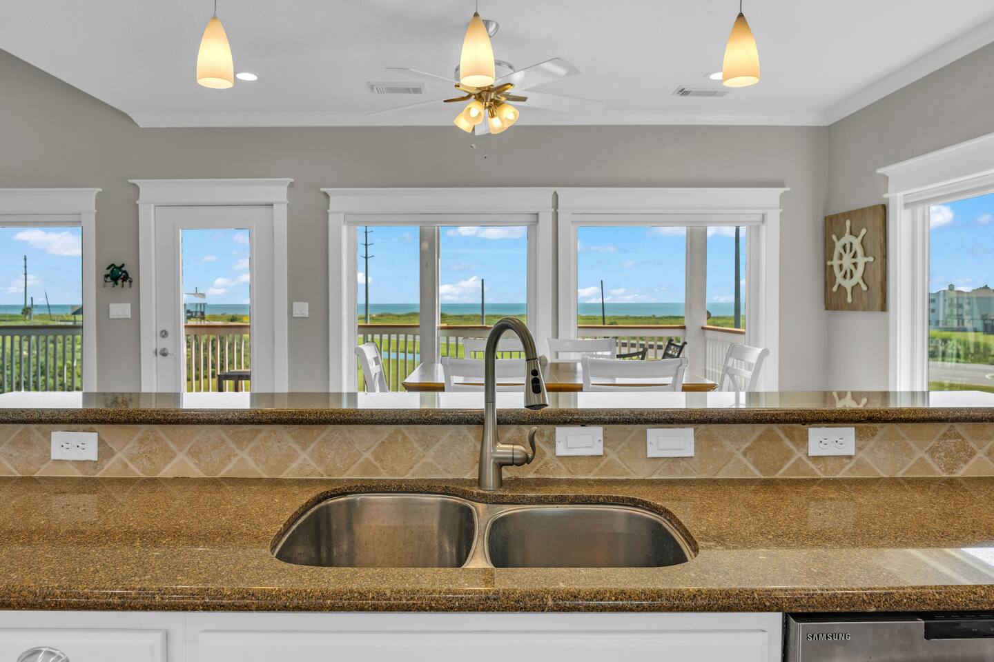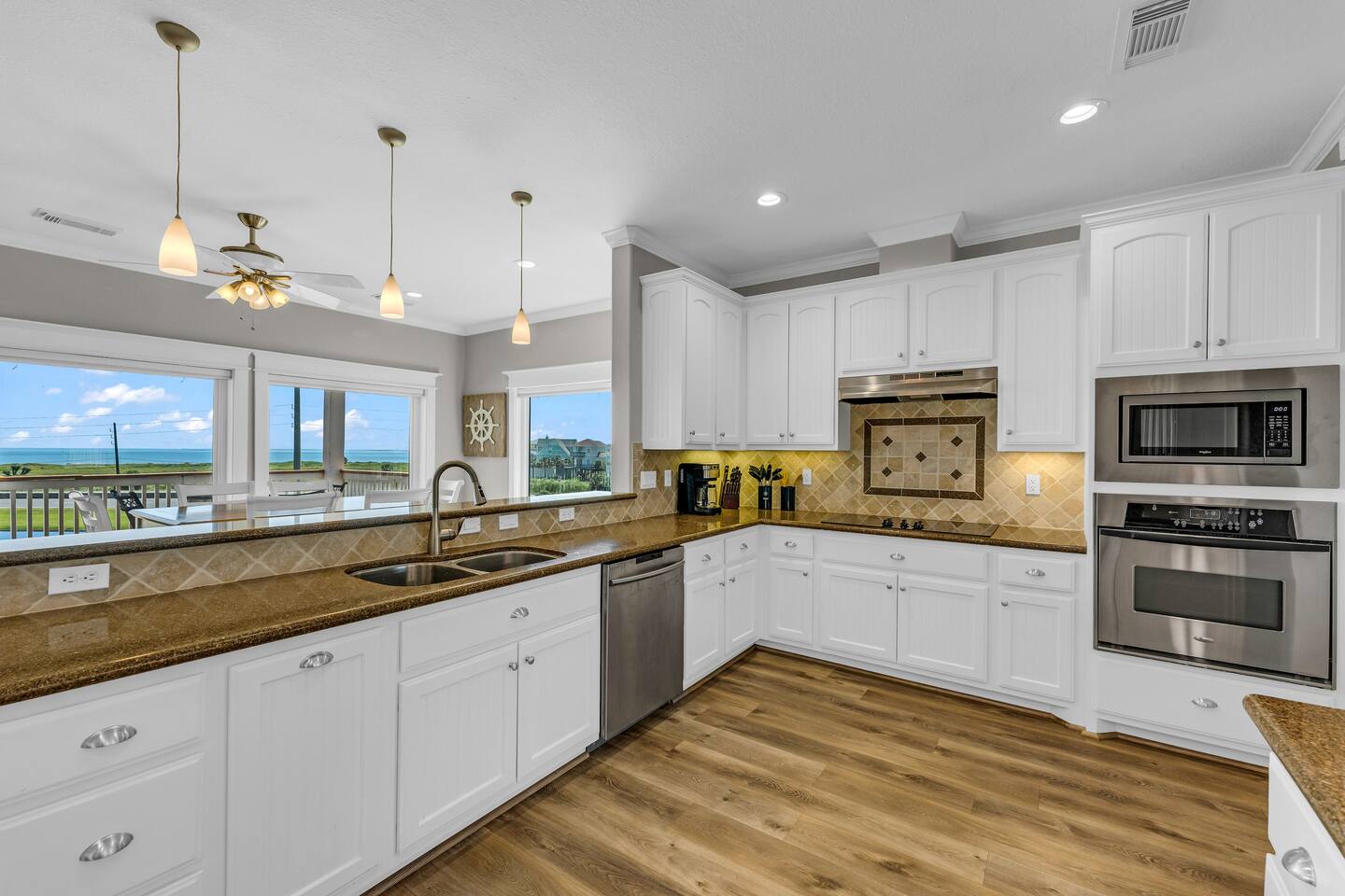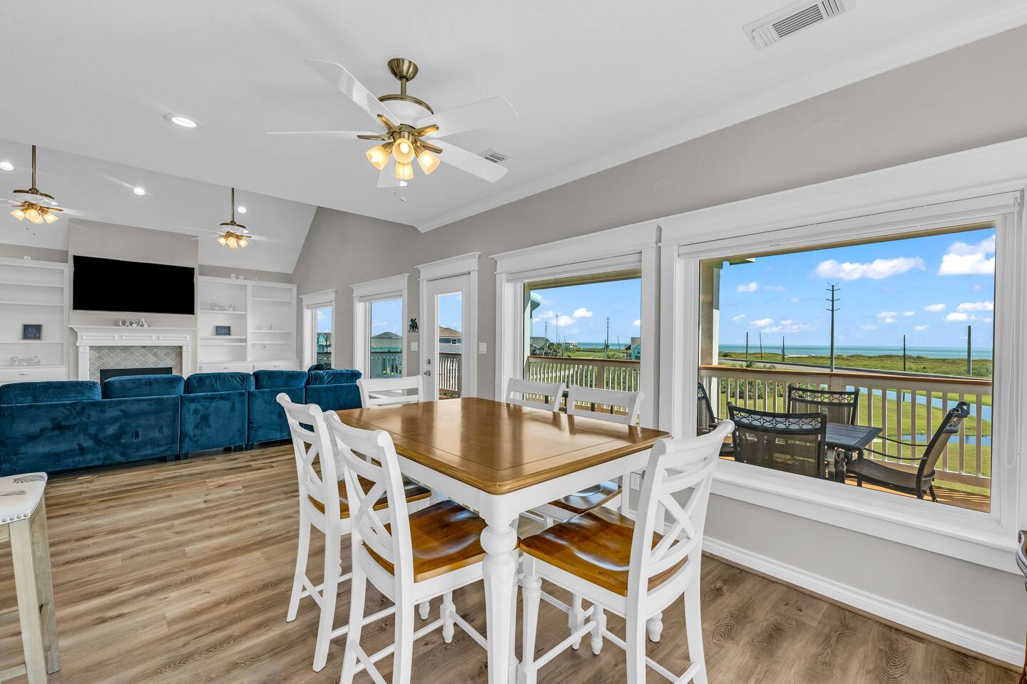 The Space Sea-renity is designed with your comfort and relaxation in mind. Its open living spaces are filled with natural light from large windows that showcase stunning views of both the Gulf and Bay. Whether you’re enjoying morning coffee on the balcony, hosting a family barbecue, or unwinding with loved ones, every corner of this home invites you to relax and recharge. What You’ll Love Prime Location & Beach Access Located in a quiet West End neighborhood, Sea-renity puts the sand and surf within easy reach. Drive in 2 minutes, walk in 10, or cruise through a private beach tunnel in a golf cart for effortless, safe access. Neighborhood Amenities Cool off at the community pool, featuring a toddler pool, outdoor shower, and a shaded gazebo with picnic tables—perfect for post-beach relaxation. Updated & Fully Equipped Past concerns about flooring and refrigerator issues have been fully resolved. You can now enjoy a modern, functional kitchen and safe, worry-free flooring throughout the home. Stunning Gulf Views Savor breathtaking ocean panoramas from the spacious balcony—ideal for morning coffee, sunset dining, or simply soaking in the view. Family and Pet-Friendly Sea-renity is perfect for family gatherings, trips with friends, and pet lovers! With space for everyone to relax and play, plus a pet-friendly policy for up to 2 pets, your entire family—including furry members—can join the fun. The Layout Second Floor: Bedroom 1: King bed with en-suite bath and crib Bedroom 2: King bed with shared bath access Bedroom 3: Queen bed with shared bath access Third Floor: Bedroom 4: Three cozy bunk beds—perfect for kids or extra guests Spacious living room and fully equipped kitchen, both with spectacular views—ideal for cooking, dining, and gathering together. Why Choose Sea-renity? Nestled in Galveston’s tranquil West End, Sea-renity combines convenience with serenity. With easy beach access, sweeping Gulf views, and all the comforts of home—including fully updated features—this beach house is the perfect retreat for families, couples, or friends. Escape the ordinary and book your stay at Sea-renity for a truly unforgettable coastal experience!